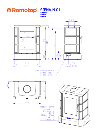 Designerski kominek Romotop LERA C GH thermaline z akumulacją