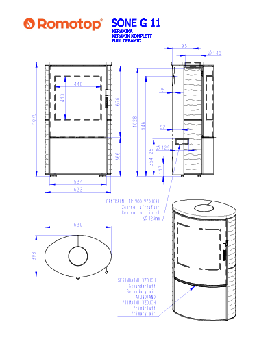 kurtyna powietrzna odpycha dym od szyby. Komora spalania wyłożona jest wysokiej jakości kształtkami z prawdziwego szamotu.