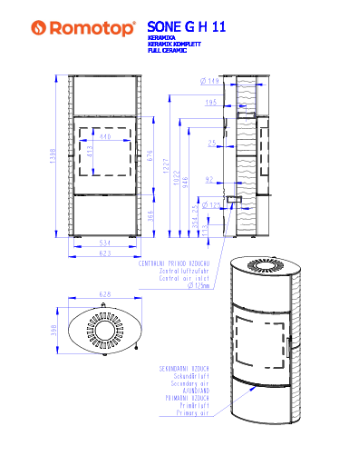 Kominek Piecyk Romotop SONE G H ceramika ryflowana z akumulacją