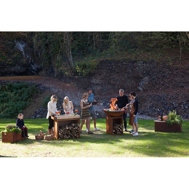 Palenisko OFYR cechuje się szczególną estetyką i urokiem, który odróżnia go od wszystkich innych produktów na rynku. OFYR został zaprojektowany by pasować do każdego otoczenia. Jest niezwykle łatwy w utrzymaniu i użytkowaniu. OFYR sprawia, żę gotowanie na świeżym powietrzu staje się stylem życie, okazją do spotkania z bliskimi i przyjaciółmi. Uzupełnieniem takiego stylu życia jest komplet wysokiej jakości urządzeń i akcesoriów OFYR. Szereg specjalnie zaprojektowanych ławek, schowków do przechowywania drewna, donic i przyborów kuchennych pozwala skonfigurować modułową kuchnię zewnętrzną, która odpowiada Twoim potrzebom. Wszystkie te elementy współgrają ze sobą, tworząc ciepłą, przytulną i stylową przestrzeń na świeżym powietrzu, idealną do radosnego spotkania przyjaciół i rodziny.