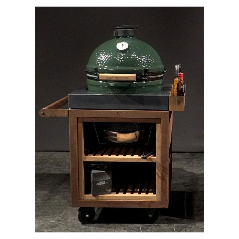Świetnym uzupełnieniem palenisk OFYR są ceramiczne grille kamado Big Green Egg. OFYR Kamado Table Corten to stół idealnie pasujący do Big Green EGG w rozmiarze L. Doskonale komponuje się z modelami OFYR PRO. Razem tworzą jednolitą, modułową i mobilną kuchnię zewnętrzną, pasującą do siebie stylem. Blat wykonany jest z z betonowej płyty.
