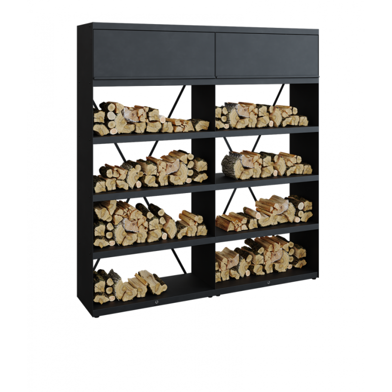 Te wytrzymałe stalowe regały przekształcają stos drewna w estetyczną ścianę. Uchylna górna półka umożliwia przechowywanie narzędzi i innych przedmiotów, a dzięki trzem dostępnym rozmiarom łatwo znaleźć rozwiązanie pasujące do Twojej przestrzeni. Dostępne w rozmiarach 216 cm na 100 cm i 200 cm. Wykonane z odpornej na działanie warunków atmosferycznych czarnej stali powlekanej.