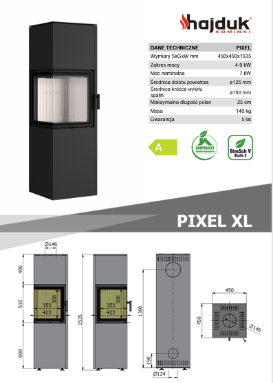 Piec kominkowy PIXEL XL został zaprojektowany z myślą o maksymalnym komforcie użytkownika i bezpieczeństwie całej rodziny. Komfort obsługi zapewniają nowoczesne rozwiązania, takie jak precyzyjna regulacja dopływu powietrza, mechanizm zamykania drzwi „Click” z samozamykaczem, czy wentylowana klamka. Piec jest tak skonstruowany, by zapewniał bezpieczne użytkowanie nawet w dobrze uszczelnionych domach z wentylacją mechaniczną i rekuperacją.