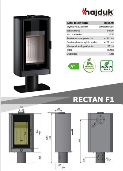 PIEC STALOWY WOLNOSTOJĄCY HAJDUK RECTAN F1