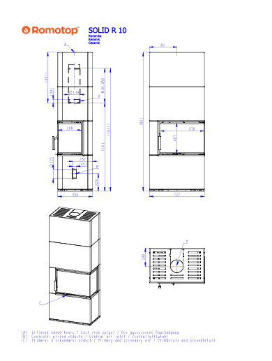 górne lub tylne odprowadzenie spalin. Doprowadzenie powietrza wtórnego na wewnętrzną powierzchnię szyby drzwiczek