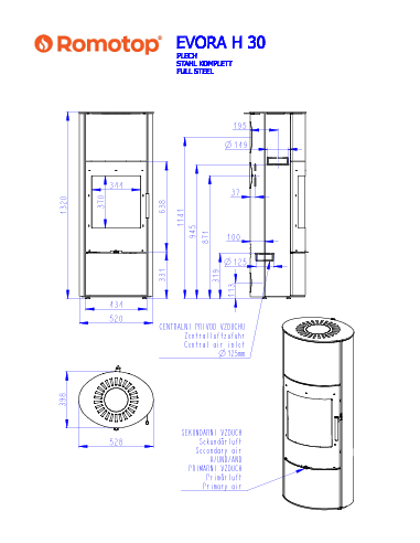 Piecyk Kominek Romotop EVORA H metal z akumulacją