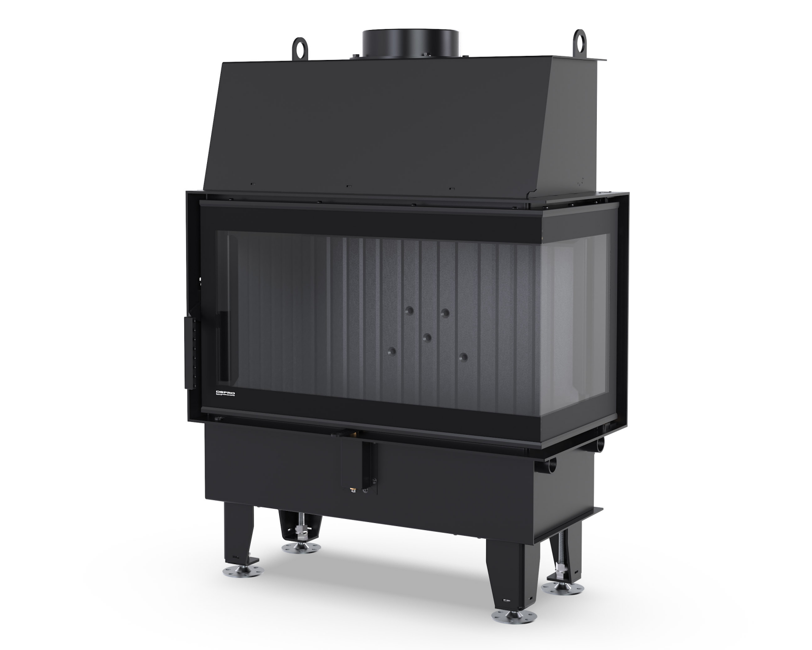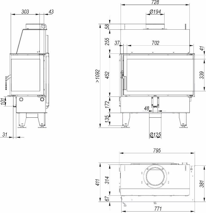 Konstrukcję wzmacnia wysoki czopuch Ø194 mm oraz gęsto rozmieszczone radiatory na ścianach zewnętrznych urządzenia, co zwiększa wymianę ciepła i skraca czas nagrzewania.