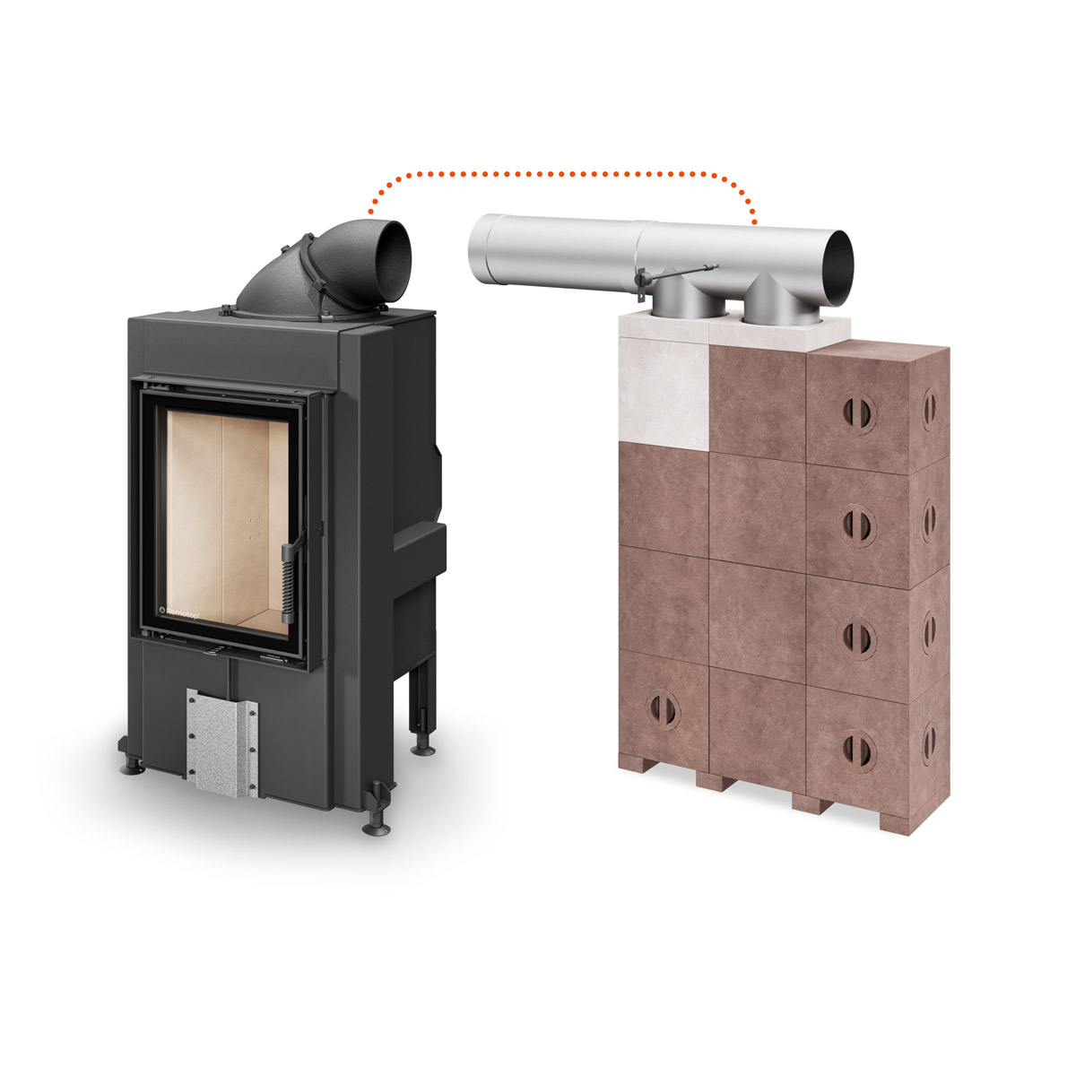 po prawej lub lewej stronie paleniska zapewnia maksymalną elastyczność podczas projektowania i montażu. Całkowita masa